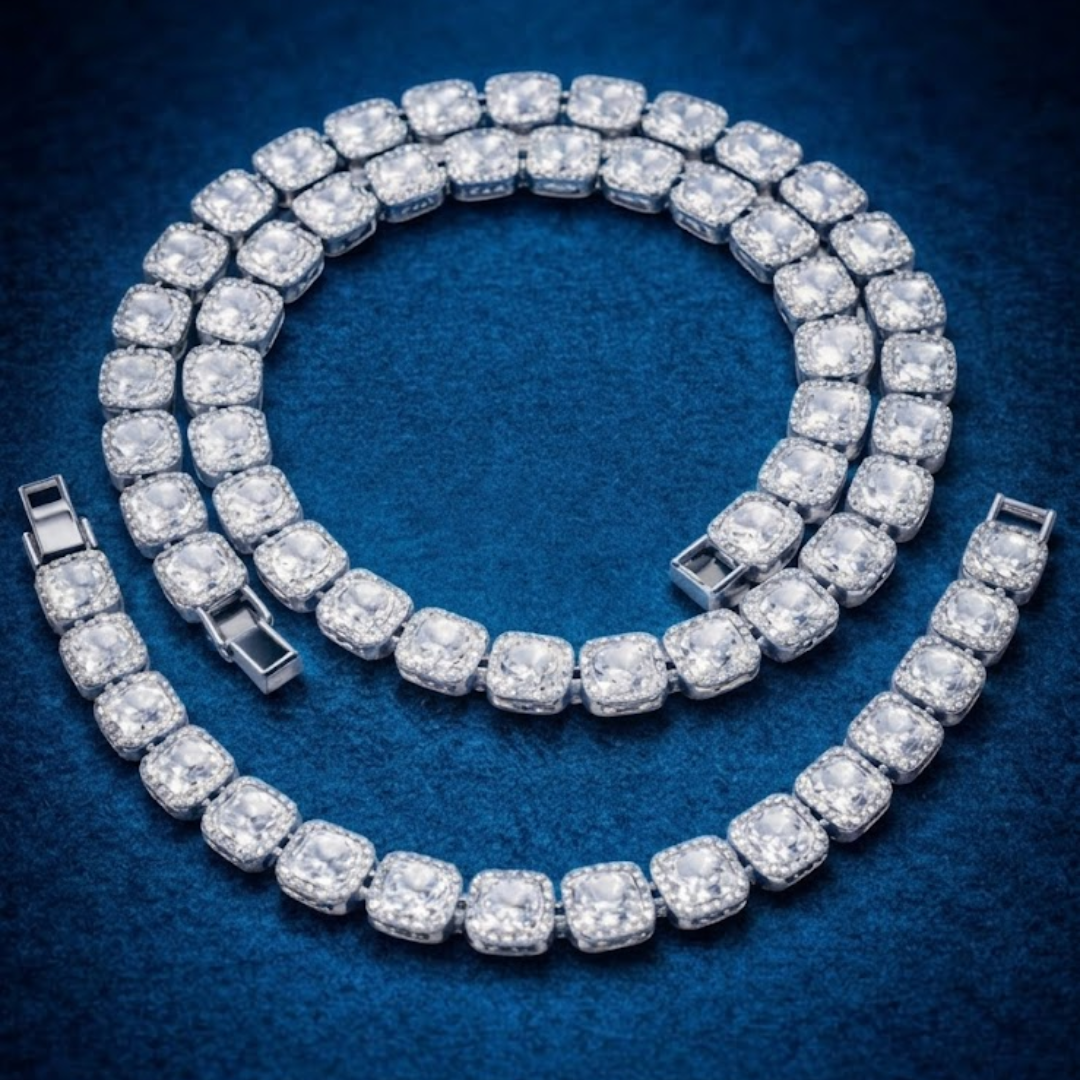 ✨ Diseño impactante: Eslabones cuadrados con cristales brillantes que capturan la luz y ofrecen un acabado vistoso y sofisticado.