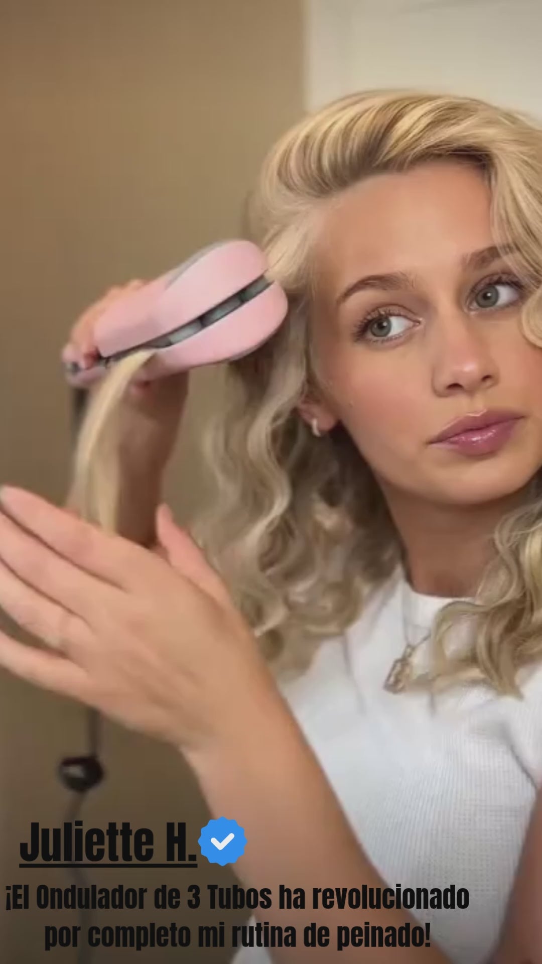 El Ondulador de Pelo de 3 Tubos funciona en casi todo tipo de cabello, desde fino hasta grueso, y desde ligeramente ondulado hasta muy liso. Es especialmente efectivo en cabello fácil de peinar, pero incluso en cabello difícil de peinar, crea hermosas ondas playeras uniformes. Para cabello muy liso o grueso, recomendamos usar un protector térmico y un poco de laca para una mejor fijación.